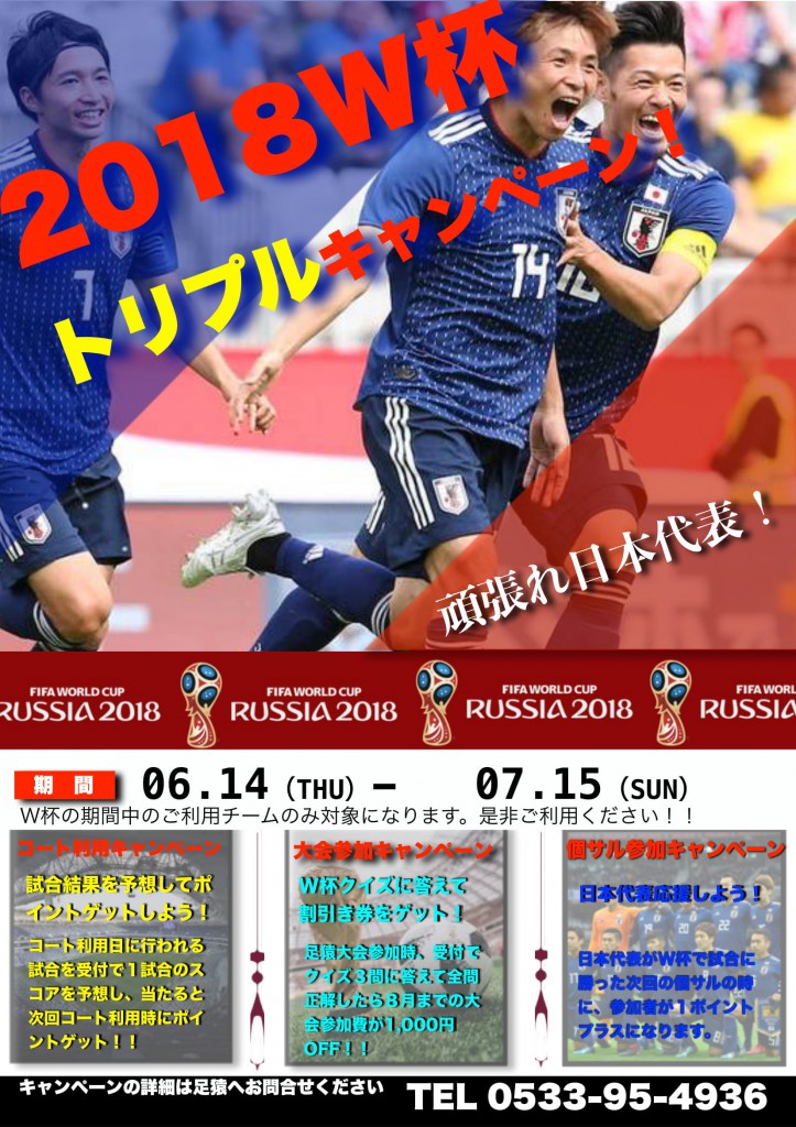 2018/06/15 W杯キャンペーン実施中 【W杯キャンペーン実施中】 みんなでW杯を盛り上げよう! ということで足猿でも3つのキャンペーンを“ドン”と行っちゃいます!!! 足猿を利用すると得しちゃいますよ! お待ちしておりまーす!!!!!
