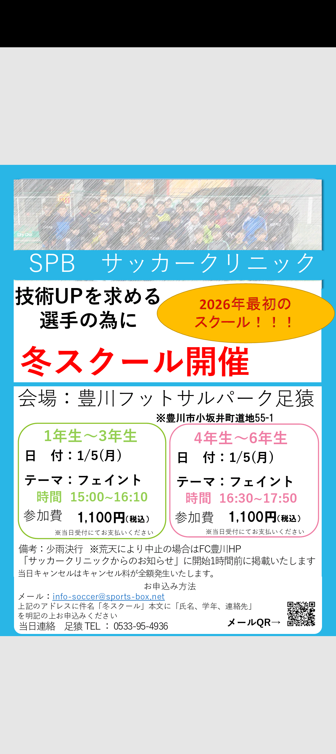 2025/12/12 冬スクール!! 【冬スクール】 やります冬スクール! テーマは「フェイント」 1年生〜3年生、4年生〜6年生に分けて開催いたします!! 2025年最初のスクールです! みんなで基礎技術を高めよう! 詳細は画像をご覧ください! たくさんのご参加お待ちしております!